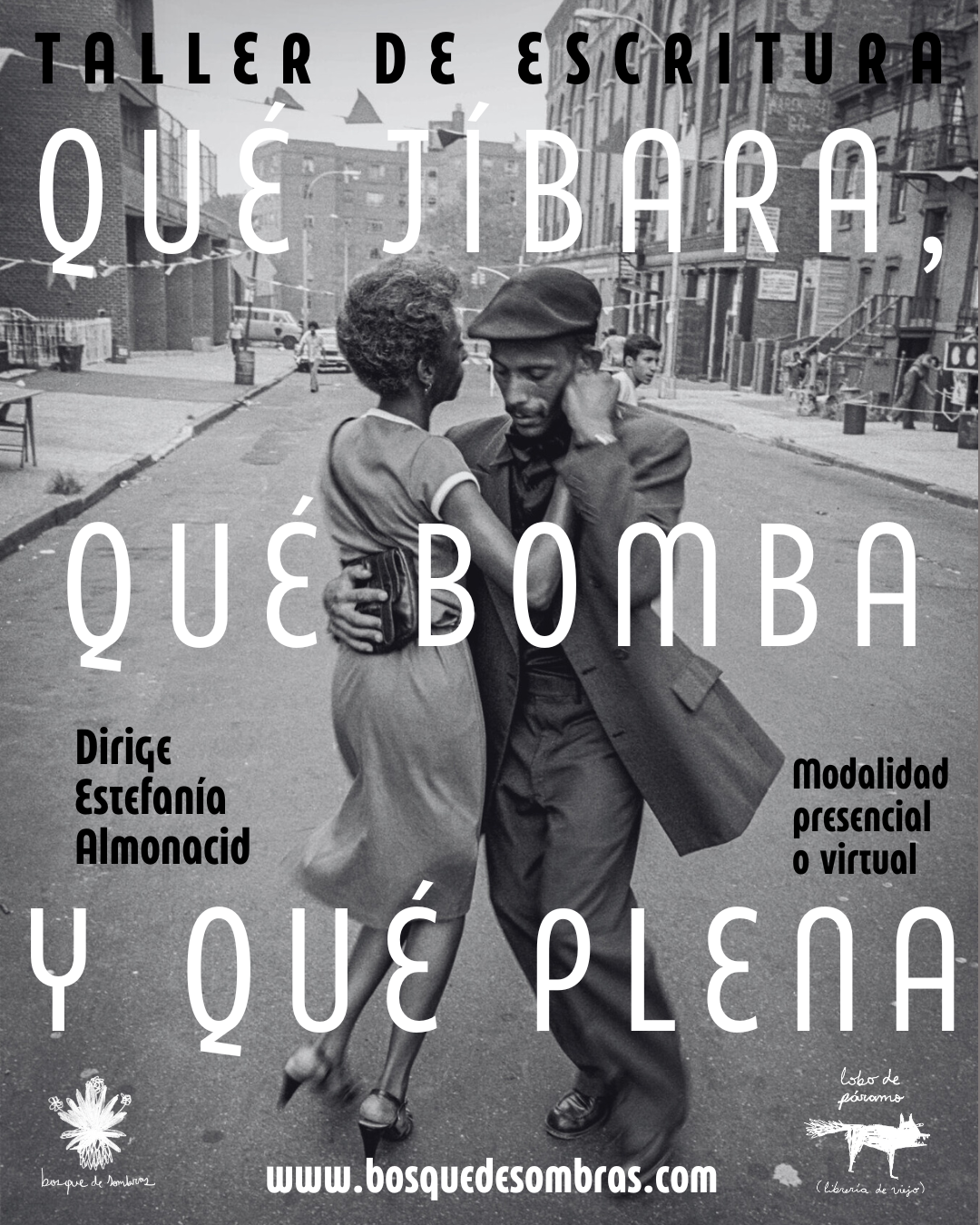 Te propongo darle play a las canciones, leer y escribir y quizás bailar o caminar, charlar. Encontrar en las canciones lo que siempre ha sido solo nuestro, la imaginación. Te propongo una tandita de canciones, una tandita de poemas, de relatos, crónicas y un collage de textos que se mezclan con la orquesta. Leer las canciones, bailar los libros. Mira que la salsa no es solo sabrosura, que es mucho más, es un estado psicodélico en el que se viaja a lugares absurdos. Mira que en ¡Qué jíbara, qué bomba y qué plena! la rumba sucederá en el bar, el barrio, la cancha, otro planeta, la habitación, algún santuario, una librería.